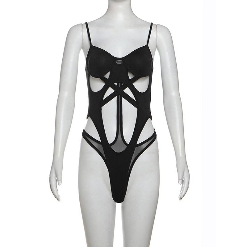Sexy Black Hollow Out Sleeveless Bodysuit
