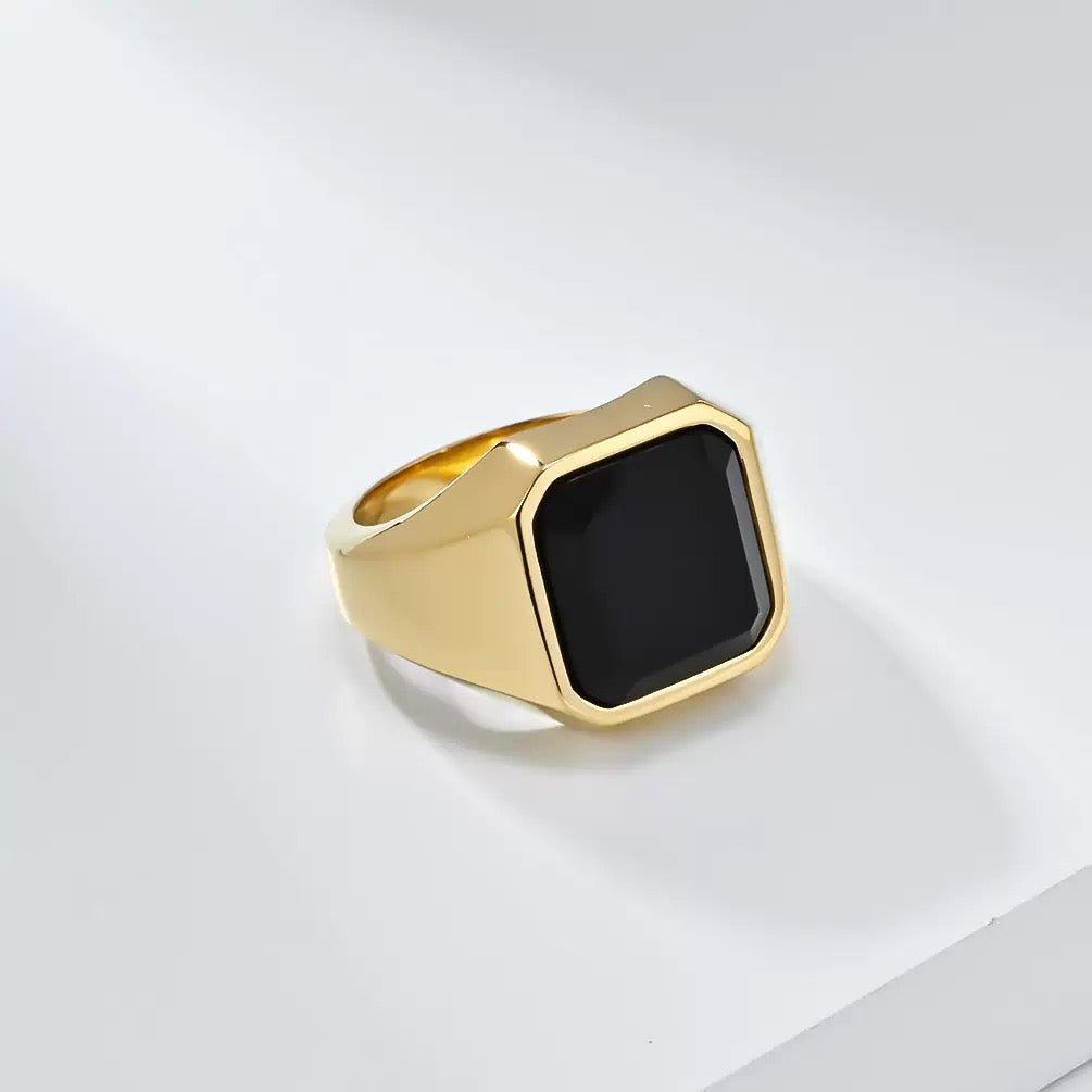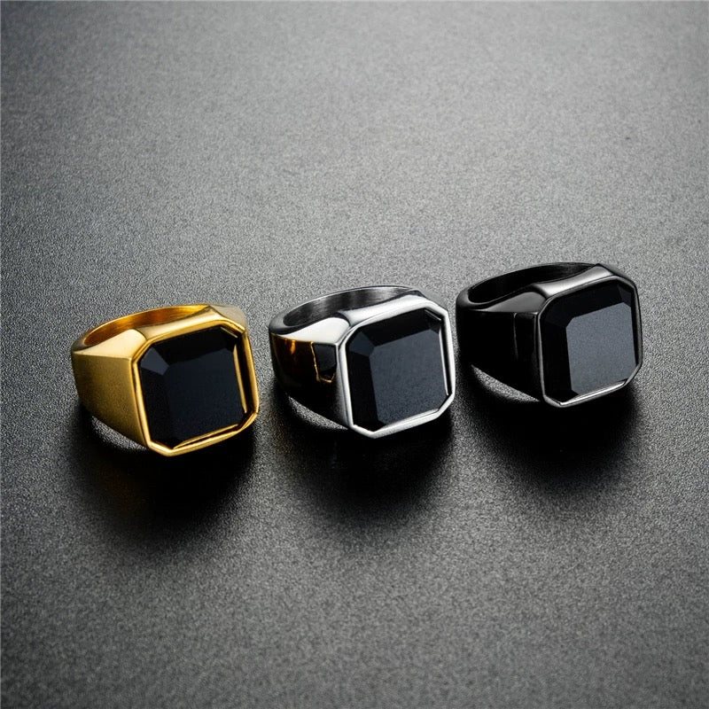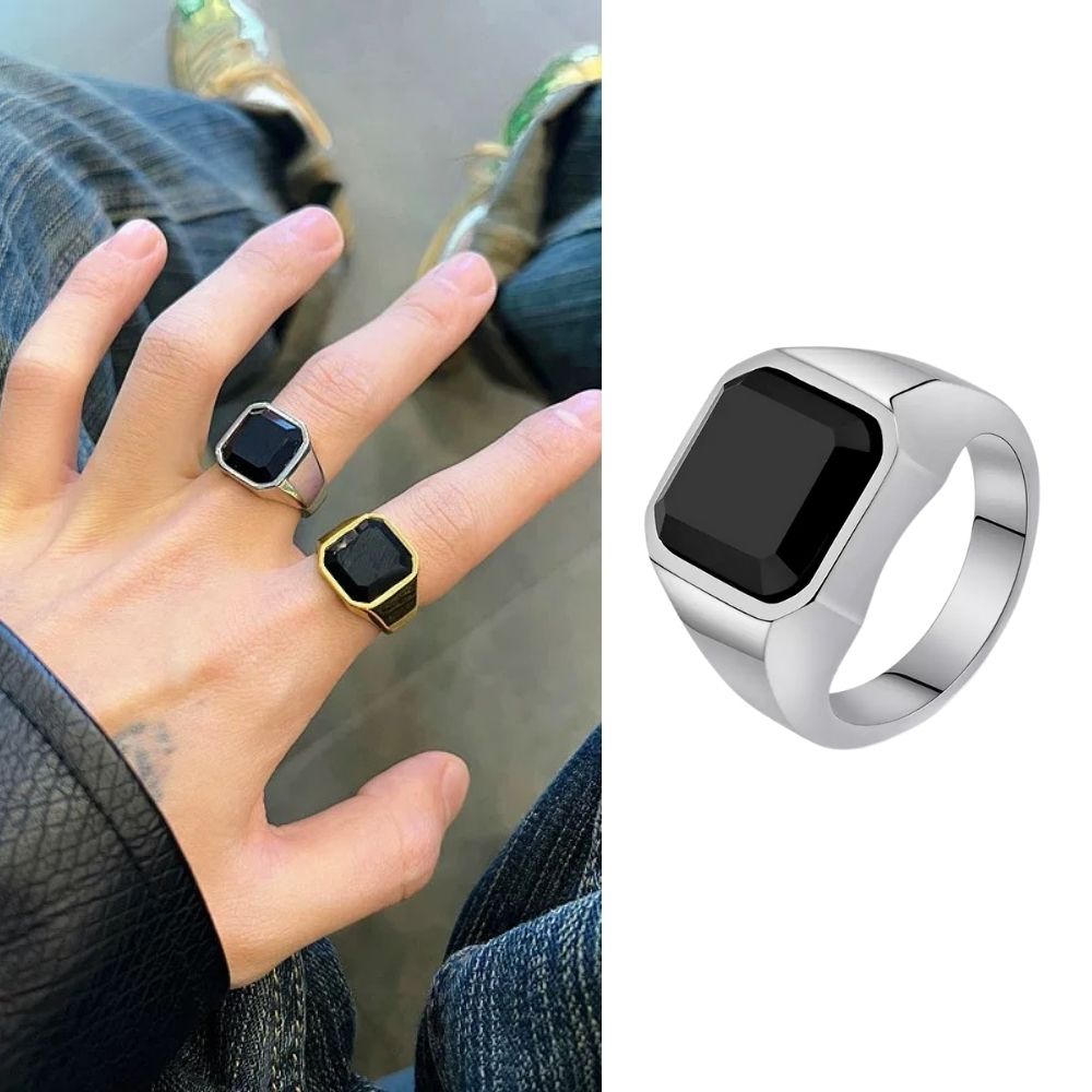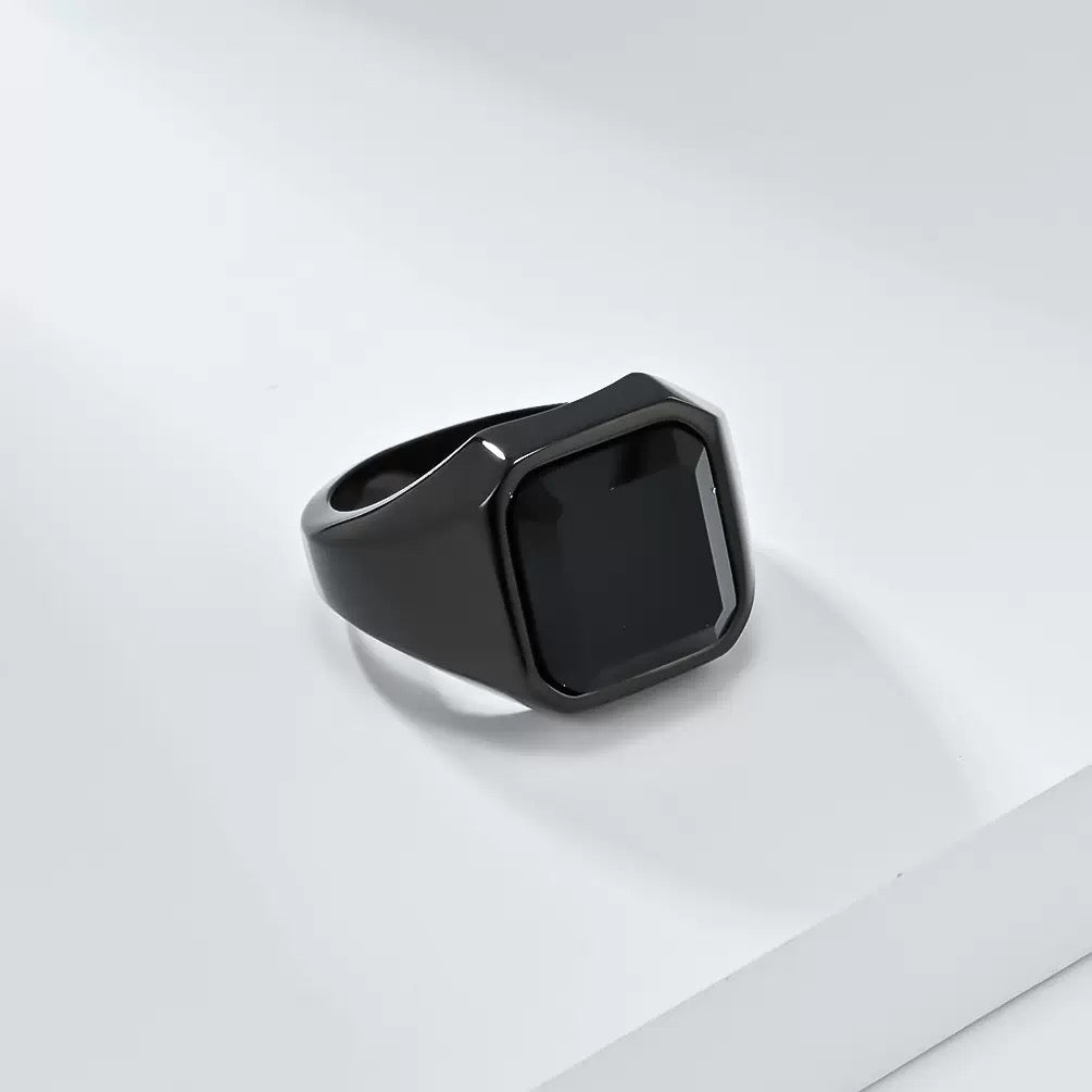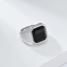 Square Obsidian Titanium Steel Ring