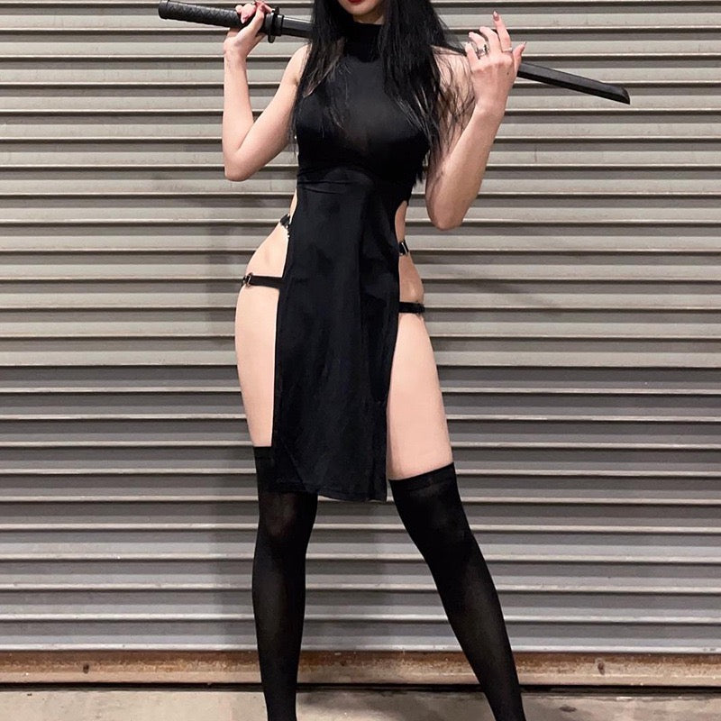 Includes: Sexy Black High Cut Lingerie Dress, Stocking