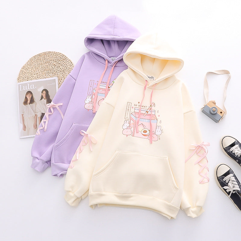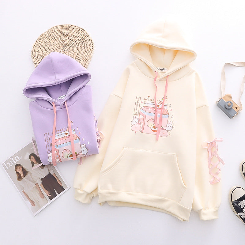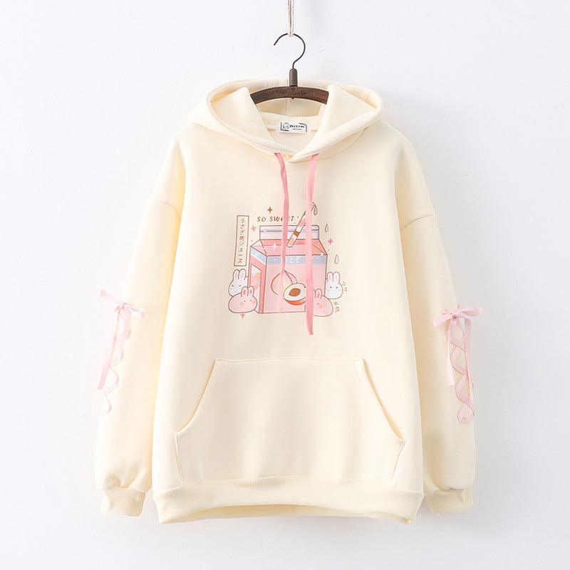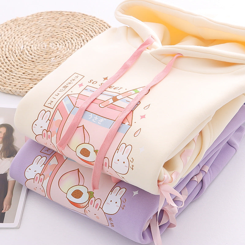 Rabbit & Peach Milk Loose Comfy Hoodie