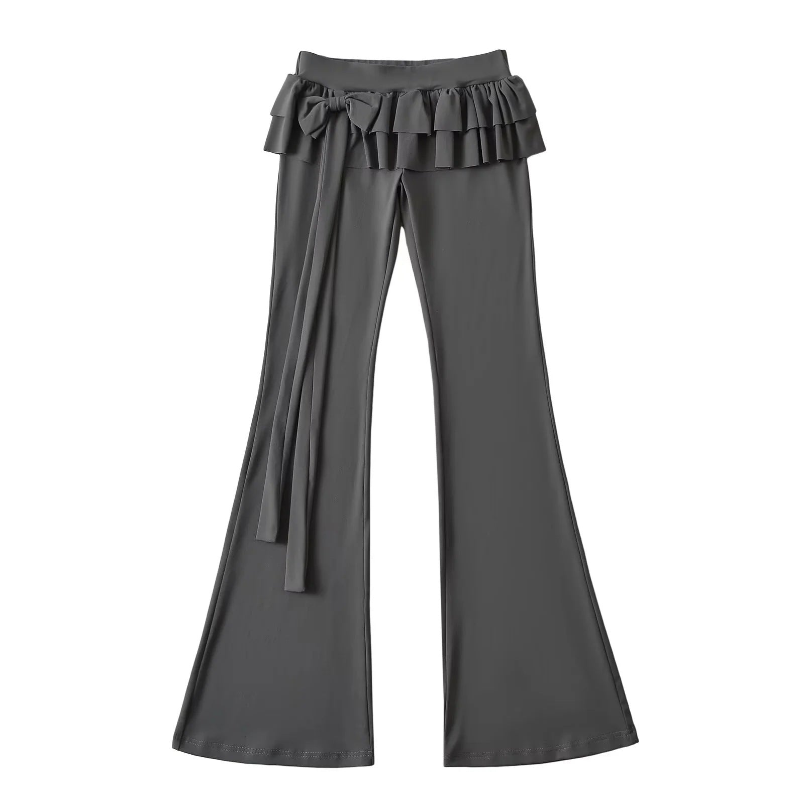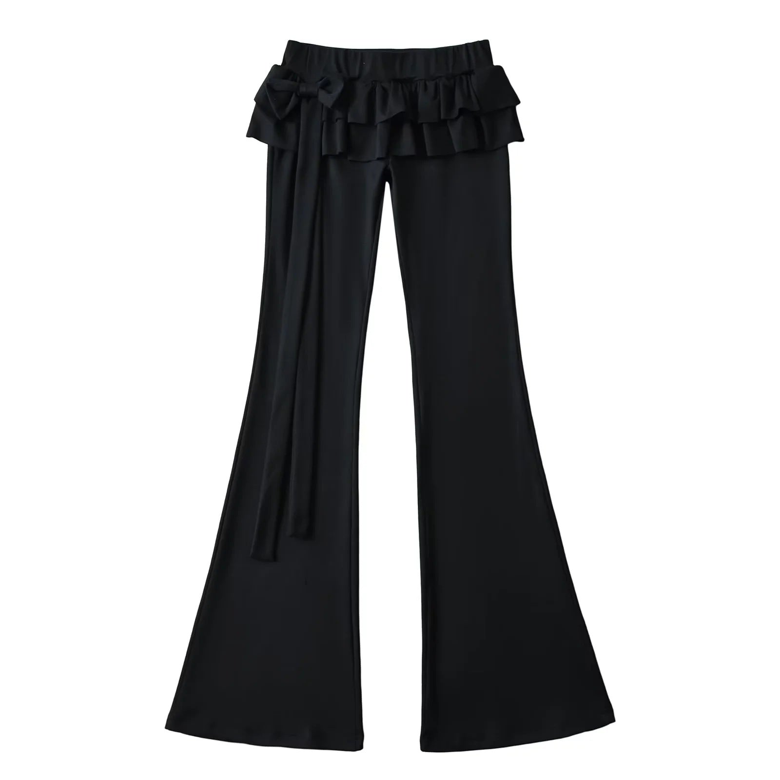 These Ruffle Flare Pants add a touch of feminine flair to any outfit. With their trendy ruffle detailing and flattering flare silhouette, they are perfect for both casual and dressy occasions. Made with high-quality fabric, these pants are comfortable and stylish. Elevate your wardrobe with these must-have pants.